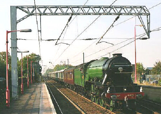 Again, not strictly a weather item, but a second picture relating to the railway reference in the feature about the effects in Royston of the Mount Pinatubo eruption. Here, the world famous locomotive 4472 Flying Scotsman races through Royston station in bright Autumn sunshine at 1025 GMT on 17th October 1999 on its journey from London (Kings Cross) to Norwich. The temperature is 11.8°C, with a north-easterly wind (head wind for the outward journey!) of mean speed 2 knots, gusting to 12 knots. Royston enjoyed 9.5 hours sunshine that day and a maximum temperature of 14.3°C. The Flying Scotsman holds the world record for the longest continuous journey by a steam locomotive, having achieved a non-stop distance of 422 miles across Australia in 1989.